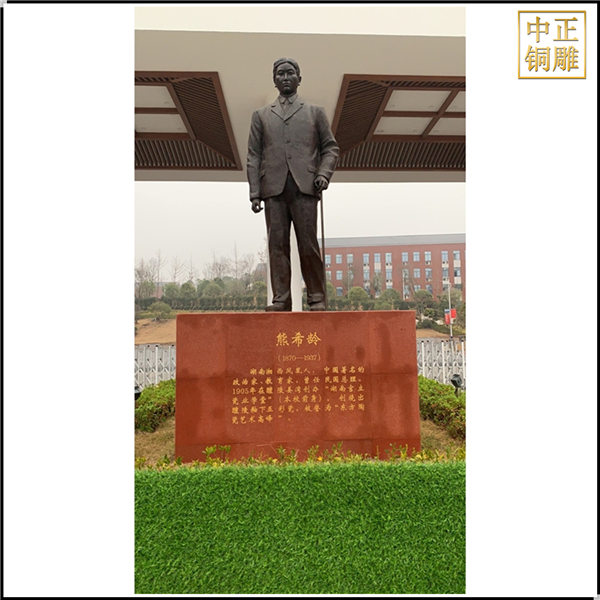 湖南工業(yè)大學(xué)陶瓷學(xué)院門(mén)前的這尊高3.8米的熊希齡人物銅雕塑,是由河北中正銅工藝品制作有限公司制作而成,這尊熊希齡人物銅雕塑高3.8米,底座高2米,總高5.8米。從最初圖紙?jiān)O(shè)計(jì)到安裝完成,總共歷時(shí)2個(gè)月時(shí)間,安裝完成后得到了院長(zhǎng)和眾多老師的一致好評(píng)。