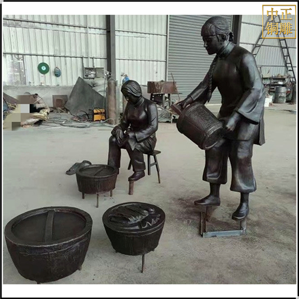 中正銅雕-打水洗衣服人物雕塑、打水洗衣服人物雕塑價格、打水洗衣服人物雕塑廠家,我公司集科研、開發(fā)設(shè)計、普通鑄造、一次性整體澆鑄、精密鑄造于一體。本公司技術(shù)力量雄厚,設(shè)備,不但重視中國青銅器原有的藝術(shù)風(fēng)格,還繼承了文物原有的藝術(shù)品味,在繼承和發(fā)揚古老文化的同時,更深一步為新老客戶定身量制各種銅制、鐵制工藝品等產(chǎn)品,曾多次受到寺廟長老和美術(shù)學(xué)院教授的好評。