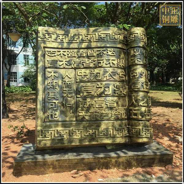 中正銅雕-校園書本銅雕塑鑄造、校園書本銅雕塑鑄造價(jià)格、校園書本銅雕塑鑄造廠家,我公司實(shí)行現(xiàn)代化企業(yè)管理,成功導(dǎo)入TPS生產(chǎn)管理系統(tǒng),形成集塑制泥塑模型、泥稿后翻制模具、翻制石膏模型、工藝師加工制作、營(yíng)銷為一體化作業(yè)的生產(chǎn)線,加上先進(jìn)的銅雕加工設(shè)備,優(yōu)秀的美術(shù)設(shè)計(jì)師,雕刻經(jīng)驗(yàn)豐富的制作人員。